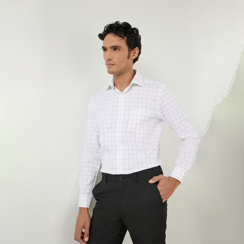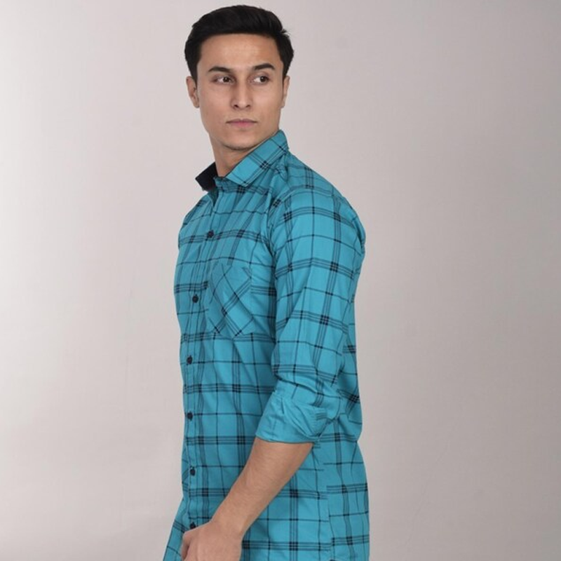 Checks Cotton Slim Fit Mens Work Wear Shirt